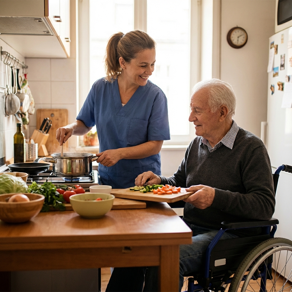 Older adults receiving consistent in-home support experience slower functional decline compared to nursing facility residents. Research shows seniors supported at home maintain stable daily function for years longer.